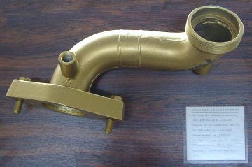 | Original Abgaskrümmer der StB-außen (bis 750 Grad warm) | Eine Bronzetafel |